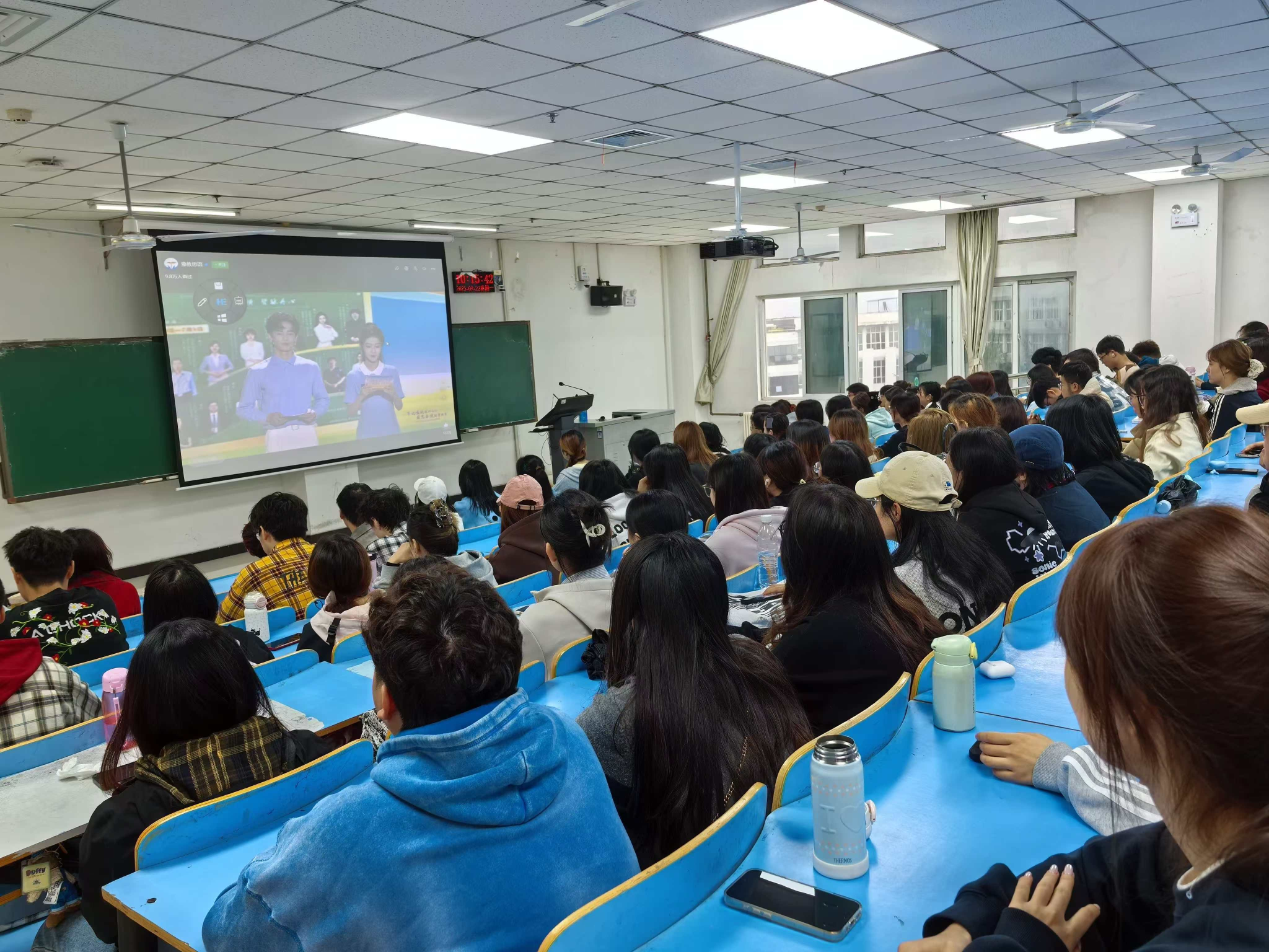 大会直播期间,学院组织学生在多媒体教师,通过线上直播在线观看。直播结束后,为学生推荐官方平台链接,引导学生利用学习强国、人民日报客户端等权威平台的专题板块,通过 VR 重现抗战场景、有声读物讲述英雄故事等数字化资源,进行沉浸式、交互式学习,让厚重的历史变得可感可触、生动鲜活。
